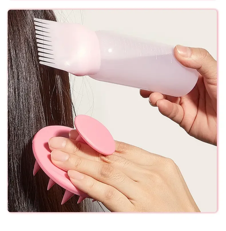 2pcs/set Silicone shampoo bottle PP Hair Dye Bottle With Aplicator, Oil Bottle Brush, Scalp Massage Brush Hair dye bottle